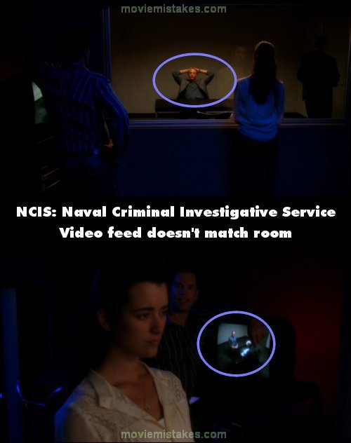 Continuity mistake: When Gibbs walks out the interview room, Mr Stevens puts his hands on his head. However on the video feed of the room that Tony is leaning on, Gibbs is still sat and Mr Stevens has not got his hands on his head. (00:07:20)