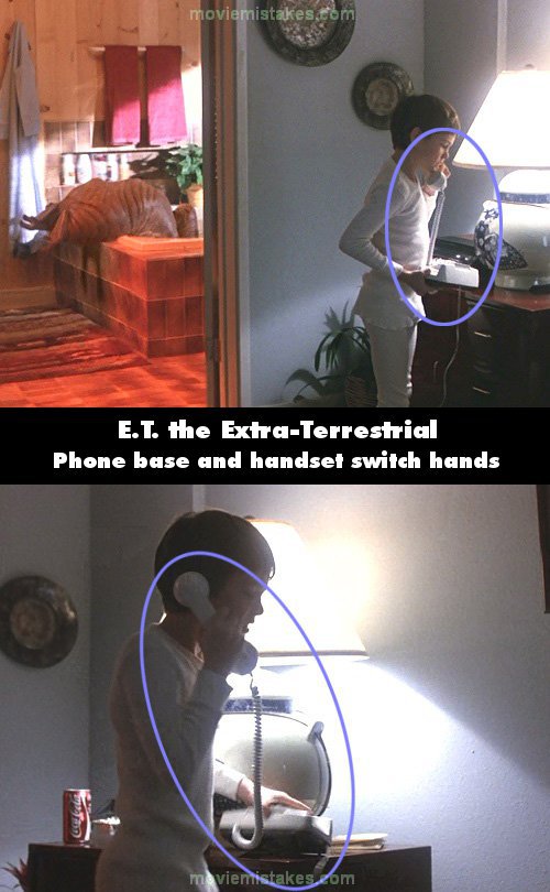 Continuity mistake: When Elliott's on the phone with his mother telling her even though he's sick he doesn't need a doctor, Elliott's holding the telephone receiver up to his ear with his left hand and the telephone base with his right hand, but in the next shot the two have suddenly switched hands.