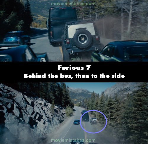 Continuity mistake: When Tej pulls in behind the bus after being shot at with armour piecing rounds, he is in line with the bus. Camera changes and now he is to the right hand side of the bus. (00:45:40)