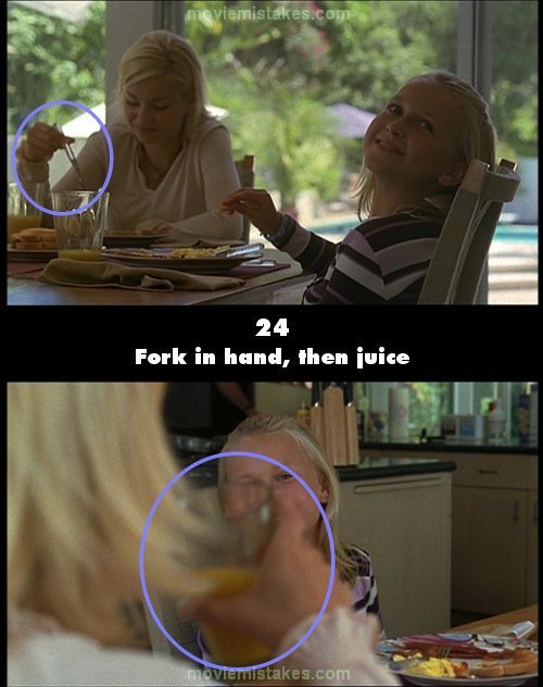 Continuity mistake: We see Kim having breakfast near the start. In one shot she has her fork in her hand. In the next she has a glass of juice. (00:11:45)