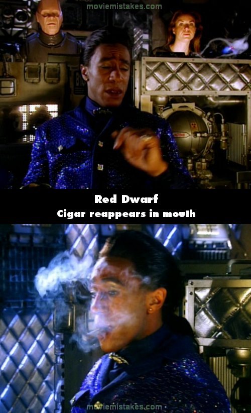 Continuity mistake: After the Cat has performed his dance routine, he begins to smoke a cigar and puts it down. The shot cuts to the ground controller, but when the shot cuts back to the Cat, the cigar is back in his mouth and has already been smoked. (00:10:30)
