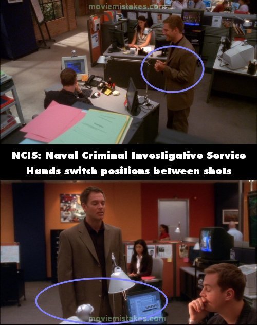 Continuity mistake: When Tony is talking to McGee at the start, Tony has his hands in front of him or to his side depending on the shot. (00:05:30)