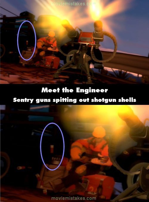Factual error: When the Level 2 Sentry gun begins firing, you can see Shotgun shells falling out of it instead of the usual ammo casings. (00:00:40)