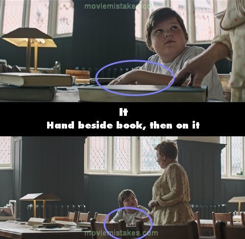 Continuity mistake: Ben looks up at the librarian and asks if he can have the book now. His hand is beside the book in that shot, but it cuts to a wide angle from a distance and now his hand is on top of it. Also his mouth opens between shots. (00:25:05)