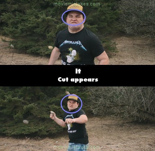 Continuity mistake: During the rock war, there's a slow motion shot of Belch screaming before Beverly then throws a rock at him. In the next shot of Belch, there is suddenly a cut on his nose before he ever gets hit. (01:06:50)