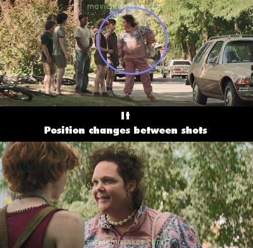 Continuity mistake: When Miss K drops her keys and then tells Beverly to get back, she leans towards her threateningly. But her body is still turned to the side as her head faces her. It then cuts to a close up and now she is completely turned towards Beverly. (01:27:00)