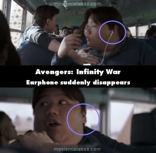Continuity mistake: When Peter sees the ship whilst he is on the school bus, he taps Ned on the shoulder and asks him to make a distraction. When he taps Ned on the shoulder, Ned has earphones in both ears, and one of the earphones falls out when Peter taps him, whilst the other earphone remains in his ear. But in the next shot, neither of his ears has an earphone in them. (00:18:25)