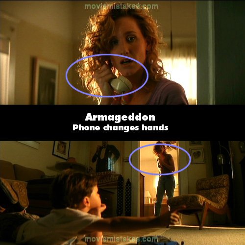 Continuity mistake: When Chick's son recognizes him on television, the camera shows a close up of his ex-wife with the phone in her right hand. However, the next shot shows her dropping the phone receiver from her left hand. (01:04:03)