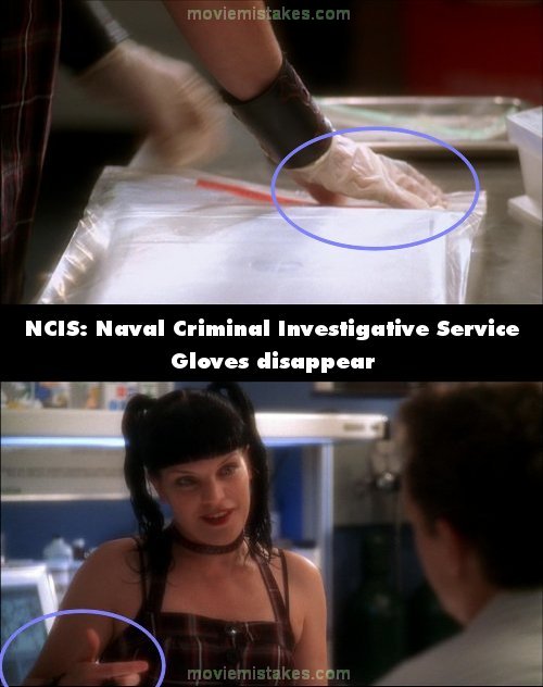 Continuity mistake: When Abby is putting the laptop back into the plastic bag her gloves disappear instantly. (00:34:15)