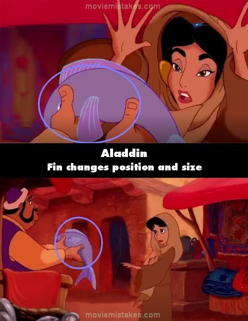 Continuity mistake: When Jasmine wanders by the market and is shown a fish, the fin is either perpendicular or parallel to the body depending on the shot.