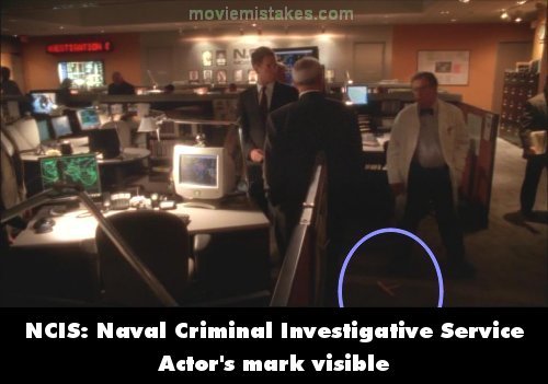 Visible crew/equipment: When Ducky comes in explaining how the victim has one more thing to say, a red tape marker is visible on the floor. (00:37:05)