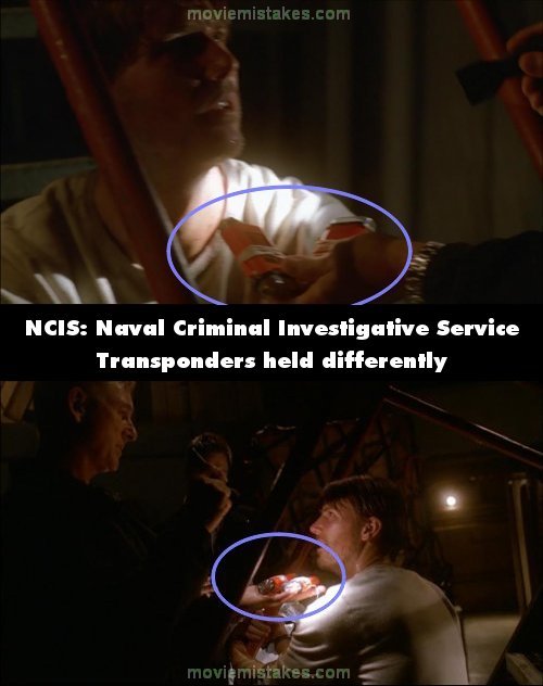 Continuity mistake: The way Gibbs holds the transponders changes between shots. (00:32:10)