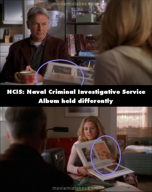 Continuity mistake: When Maddie turns the photo album round, its position changes between shots. In the first shot she is holding it by the top of the album, as shown with a brown photo being away from her hands. Camera changes and now she is holding it by the bottom of the album and her hand is on the brown photo. (00:09:40)