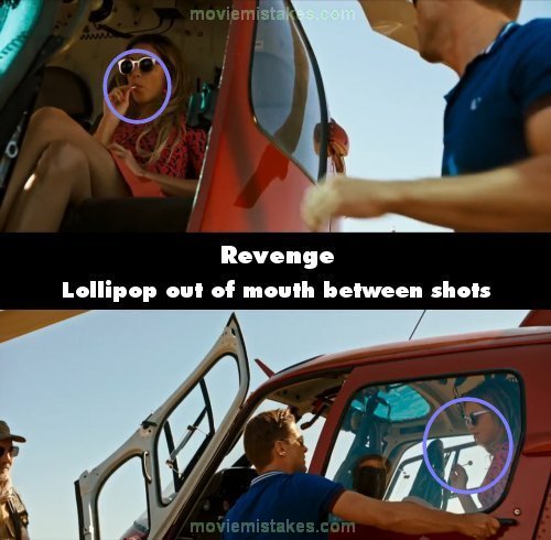 Continuity mistake: When the helicopter arrives at the house, Jen is shown sucking on a lollipop whilst Richard gets out. The camera changes angles to Richard opening the door - the lollipop is suddenly out of her mouth. (00:02:05)