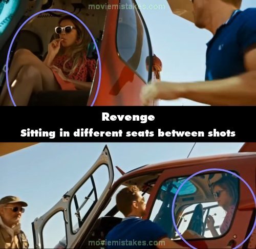 Continuity mistake: On the helicopter, as the camera is pulling away from Richard's sunglasses, he is sitting in the passenger seat and Jen is shown sitting in the back, in the middle seat. When the helicopter lands a few seconds later, Jen is still in the middle seat, but when Richard opens the door, she is now sitting in the left hand side seat. (00:01:30 - 00:02:05)