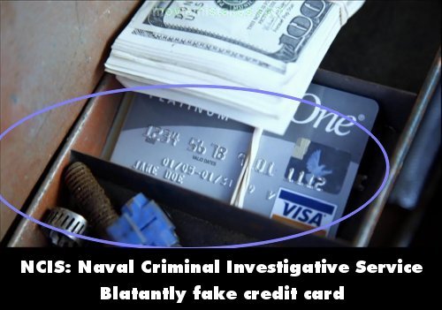 Revealing mistake: Agent Lang takes a picture of a debit card inside the first victims car which is a clearly prop. The name is "Jane Doe", and the card number is 1234-5678-9101-1112. (00:05:40)