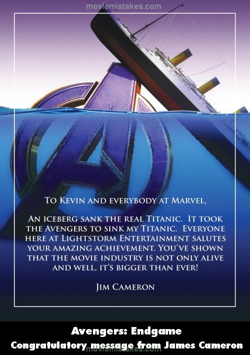 Trivia: When Endgame beat Titanic's box office record, James Cameron sent a congratulatory message to Kevin Feige and Marvel on dethroning his film.
