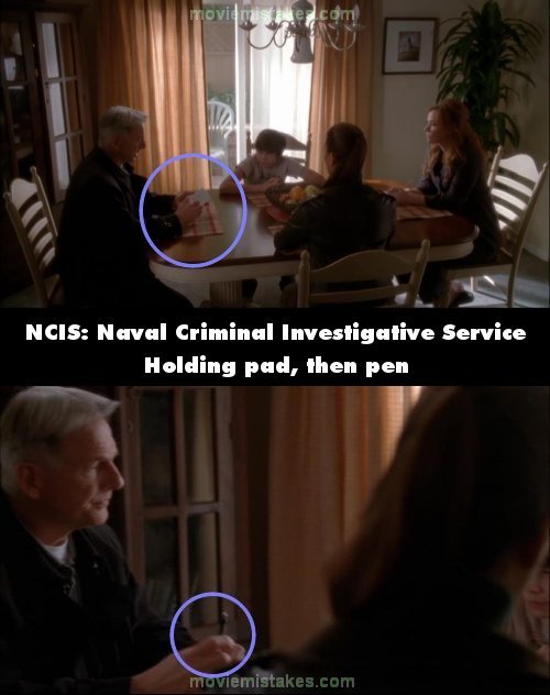 Continuity mistake: When Gibbs asks the kid where he got the gun, he has a notepad in his hand. Camera cuts and it's now a pen. (00:05:25)