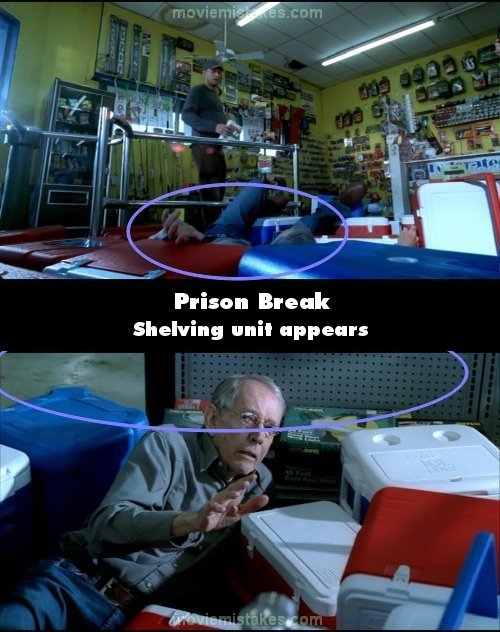 Continuity mistake: When Michael knocks the clerk to the floor, his head is next to 2 coolers. When the camera changes a shelving unit has appeared. (00:02:30)