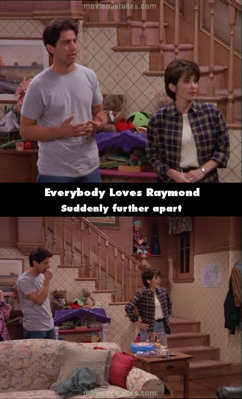 Continuity mistake: When Robert is leaving Ray's house, Ray is stood next to Debra. When the camera changes he is much further away. (00:09:55)