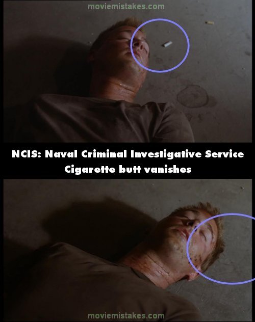 Continuity mistake: We finally see that it is McGee tied up on the floor. When he is rolled over to see his face, there is a cigarette butt on the floor by his head. When the camera next shows him the butt has gone. (00:21:50)