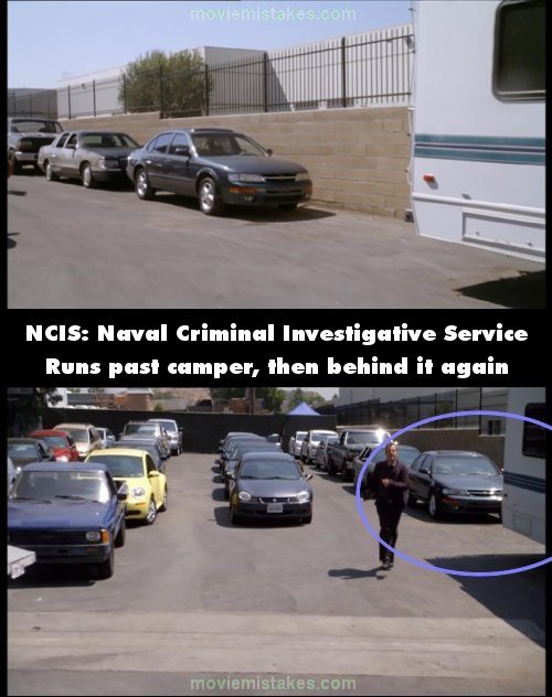 Continuity mistake: When McGee is running from the dogs he runs past the camper-van. Camera changes and he's level with the rear of the camper-van again. (00:33:00)