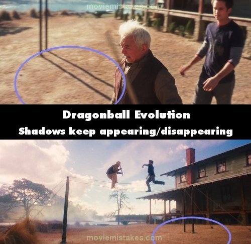 Continuity mistake: At the beginning of the sparring between Goku and his Grandpa, the clotheslines project clear shadows on the ground. During several shots during the silly fight (several from above when they flip around, or for instance the wide shot that follows the bug-eating bit) there's a total lack of shadows. (00:02:30 - 00:03:30)