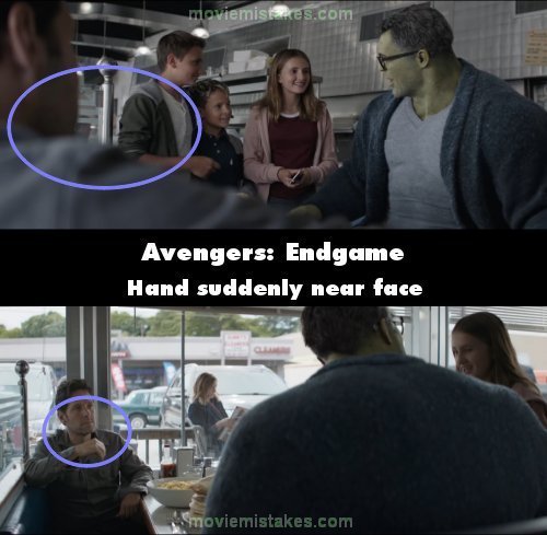 Continuity mistake: When the three kids approach Bruce in the diner, Scott is in the corner of the frame with his right arm resting against the seat he is sitting on. The camera changes angles where his right hand is suddenly being moved away from his face, despite not being near his face in the previous shot. (00:37:45)