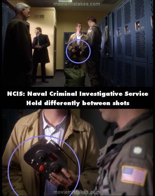 Continuity mistake: McGee pulls the remote out of his bag and it changes position between the long and close ups. (00:38:30)