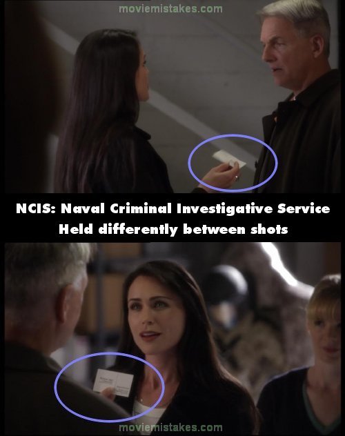 Continuity mistake: Hart offers Gibbs a card a second time and he declines stating he already has one. The way she holds the card between shots differs completely. (00:29:00)