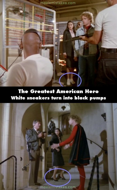 Continuity mistake: While Ralph's students are babysitting Kevin, when Shackleford takes Ralph, Bill, and Pam prisoner and brings them to the headquarters Pam is wearing white sneakers, but when they are led downstairs Pam is wearing black pumps thereafter. (00:28:00)