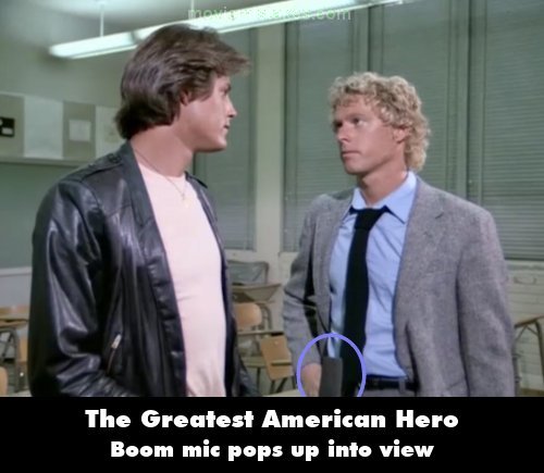 Visible crew/equipment: After Ralph and his students talk about Beck's will being missing the class bell rings. When Ralph says, "Tony, you got a minute," just as he walks over to Tony the microphone pops up into view at the bottom of the screen, and it continues to be seen during their conversation. (00:05:30)