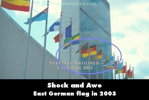 Factual error: In a picture from the UN headquarters in New York in the year 2003 you see two German flags. The German Democrativ Republic hasn't existed since 1990. (01:16:04)