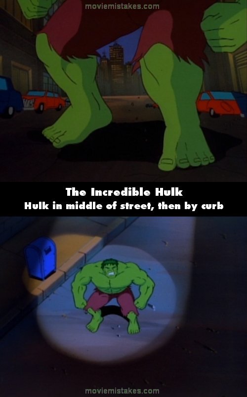 Continuity mistake: When the Hulk lands in the streets of Chicago after his battle with Ghost Rider, he is in the middle of the street. When the shot changes, he is suddenly next to the curb and a mailbox.