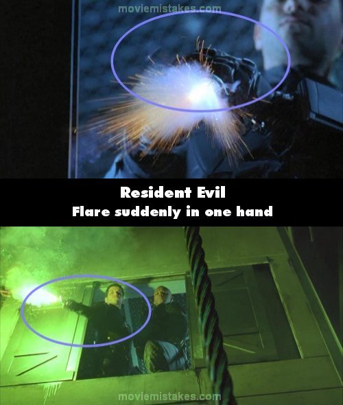 Continuity mistake: When the SWAT team arrives at the hive, the open an elevator shaft and one of them lights a flare with 2 hands. As the camera changes, he is now holding it at arm's length and with one hand without enough time to do so. (00:23:05)