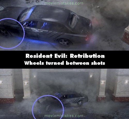 Continuity mistake: When the car comes to a stop after killing the licker, the front wheels are straight and flush with the body of the car. When the camera changes the wheels are turned over to the left and sticking out. (00:52:20)