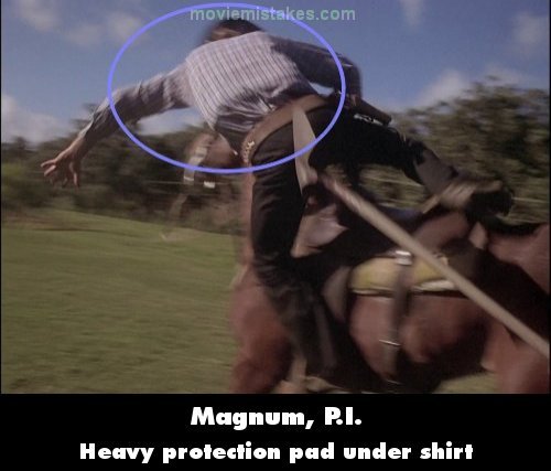 Revealing mistake: When Adelaide bangs her shovel against a bandit that falls from the horse, you can see the man has extensive padding under his shirt, to take the hit and the fall. (00:13:45)