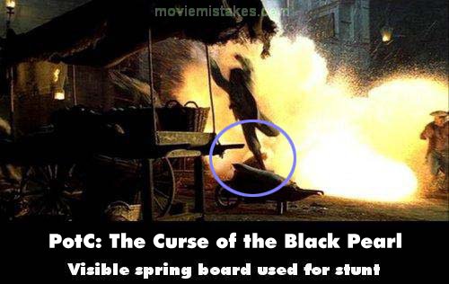 Visible crew/equipment: During the cannon attack on the harbour near the beginning of the film, a spring board, used to propel one of the stuntmen dressed as a sailor into the air, is visible during an explosion near the dock. (00:30:20)