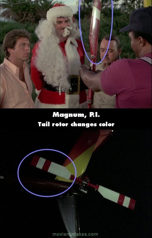 Continuity mistake: TC is working by the tail rotor to fix the vibration. It's red with thin white stripes. By the end of the episode the rotor is the opposite; white with red stripes. (00:06:40 - 00:44:20)