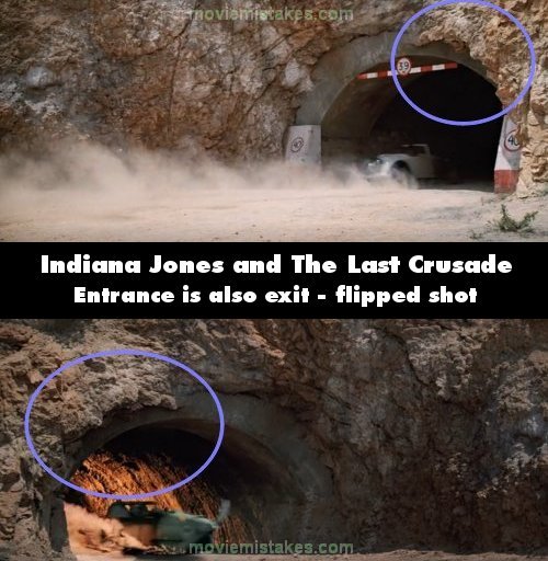 Revealing mistake: When the car is chased by a plane and enters a cave, check the rocks above the entrance and you'll notice that both the entrance and exit are the same location and the final shot has been flipped.
