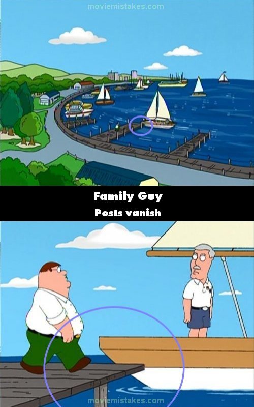Continuity mistake: When we see Peter walking over to Carter's boat, in the long shot there is a wooden post above water at the end of the jetty. This post then disappears. (00:06:10)