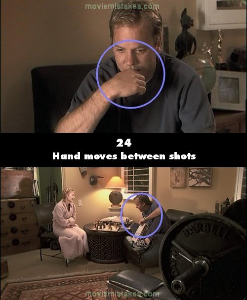 Continuity mistake: When we first see Jack he has his hand up by his mouth and then by his chest. When the camera changes to show Kim, his hand is now lowered. (00:03:30)