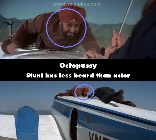 Revealing mistake: On top of the plane, Gobinda's stunt is noticeable because he has less of a beard.