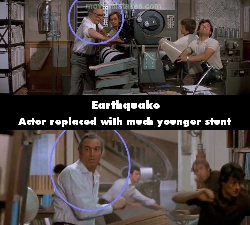 Revealing mistake: When the California Seismological Institute collapses, the old boss is replaced by a much younger stunt. Also, his sleeves swap between rolled up or not and his tie disappears.