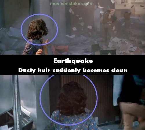 Continuity mistake: Before the mother is covered in glasses, she runs away, her hair covered in dust. A shot later it's clean and shiny. This is because the actress was replaced with a stunt with a wig. (00:58:50)