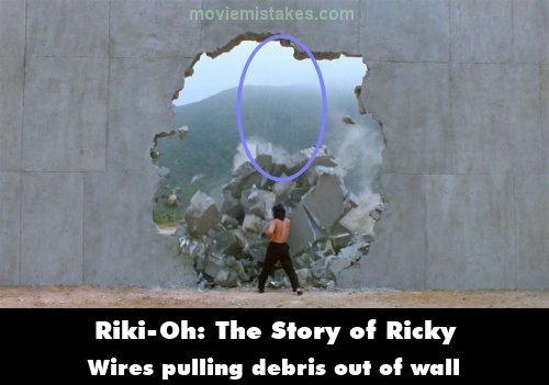 Revealing mistake: When the prison wall begins to break apart after Ricky punches it, in the wide shot where the debris from the punch is shown falling to the ground, multiple wires can be seen pulling the chunks of debris from the wall. (01:30:04)