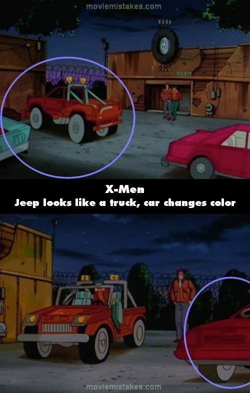 Continuity mistake: When Wolverine is walking towards his jeep after leaving the pool hall, his jeep looks more like a truck. Additionally, the car parked next to him is light blue, but then is red when Wolverine is climbing in his jeep. (00:14:23)