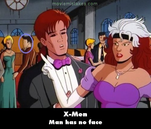 Other mistake: When Gambit is attempting to kiss Rogue at the wedding, the man standing over Gambit's right shoulder has no face. (00:04:03)