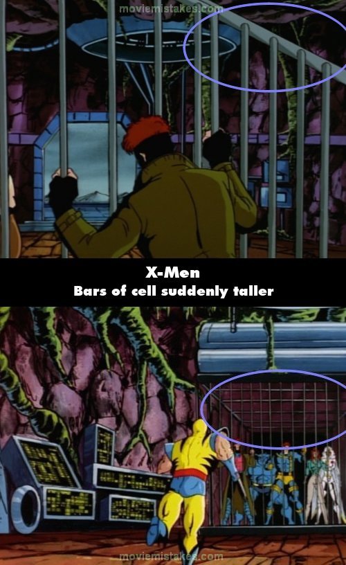 Continuity mistake: When Gambit is watching Rogue being taken away, you can see the bars of their holding cell are only about a foot taller than Gambit. Later in the scene when Wolverine is attempting to free the X-Men from the cell, the bars now go all the way up to the ceiling. (00:14:13 - 00:14:48)