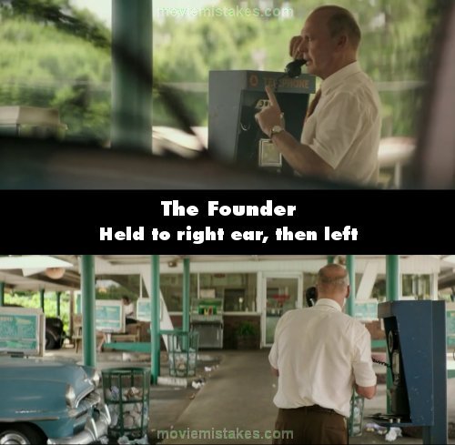 Continuity mistake: When Ray Kroc talks to Dick McDonald over the phone for the first time, he's holding the receiver over his right ear. When Dick tells him the McDonald's address, Ray is holding the receiver over his left ear.